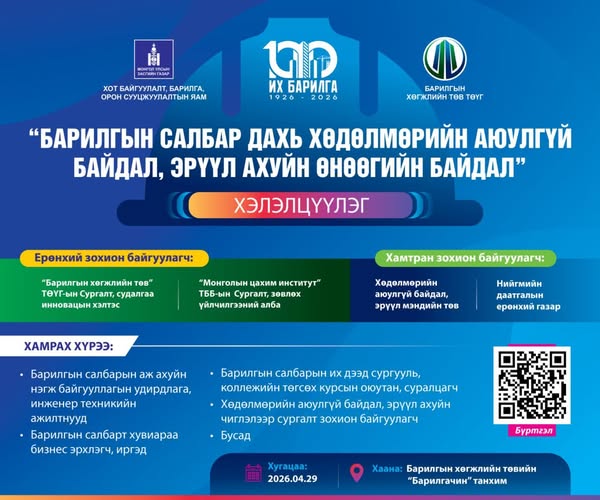 Хугацаа: 2026 оны 04 дүгээр сарын 29-ний өдөр